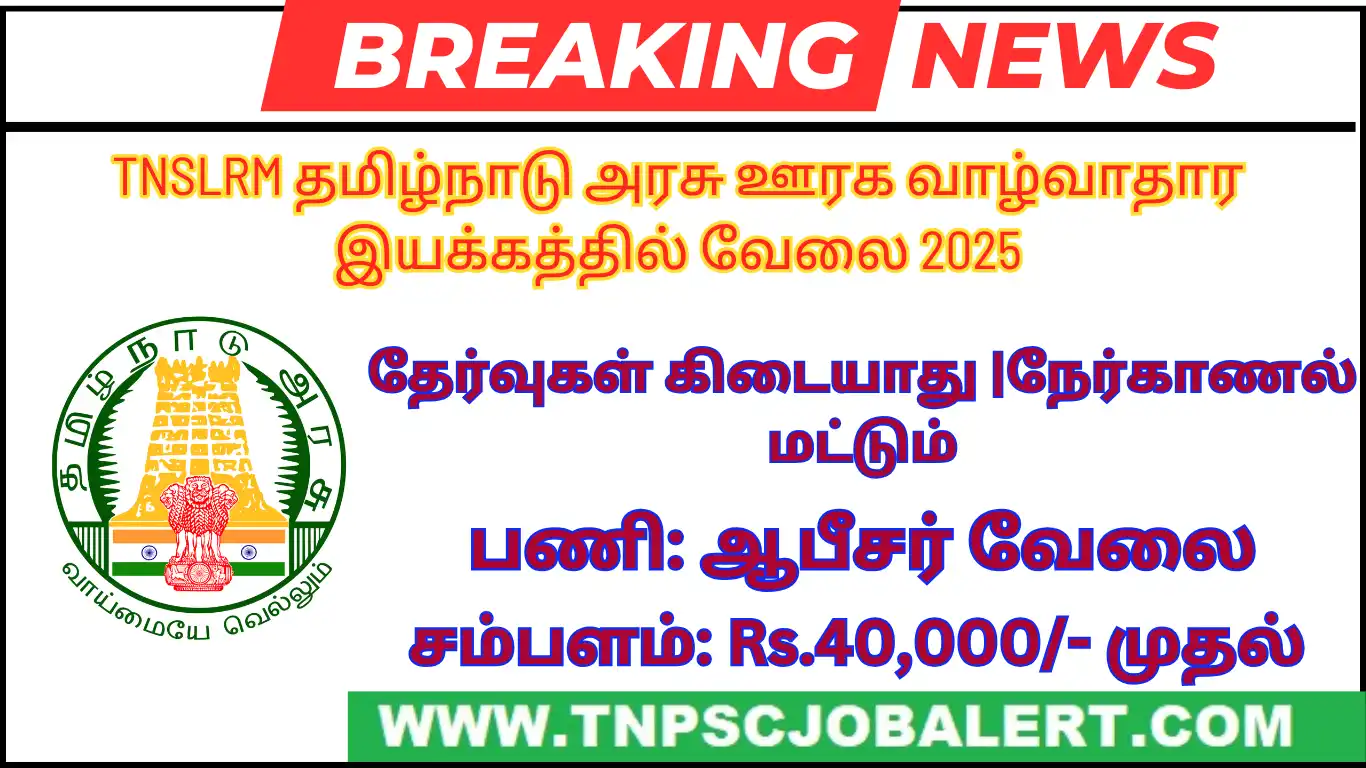 According to the post of TNSRLM Job Recruitment 2025 – Various, Community Resource Person Post recruits Various candidates to select. All candidates have to be requested to check the current job openings of TNSRLM Job Recruitment 2025 before applying to this job recruitment.