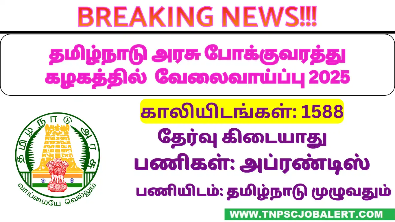 According to the post of TNSTC Job Recruitment 2025 – 1,588, Apprentice Post recruits 1,588 candidates to select. All candidates have to be requested to check the current job openings of TNSTC Job Recruitment 2025 before applying to this job recruitment.