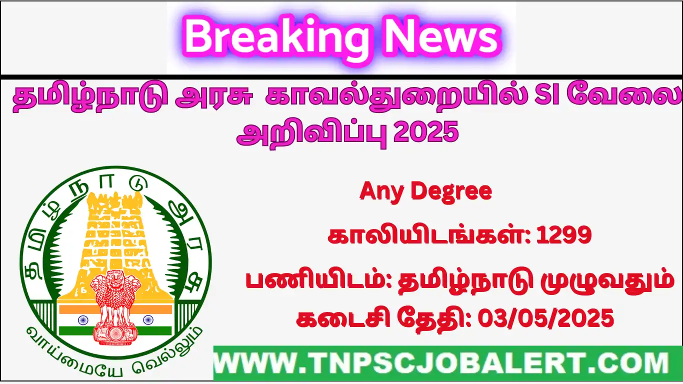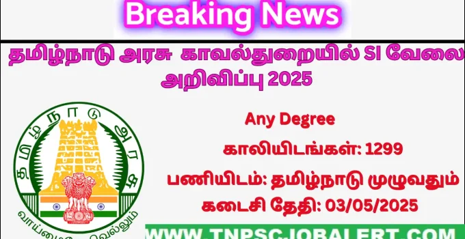 TNUSRB Job Recruitment 2025 – 1,299, Sub-Inspector Post Short Details:-