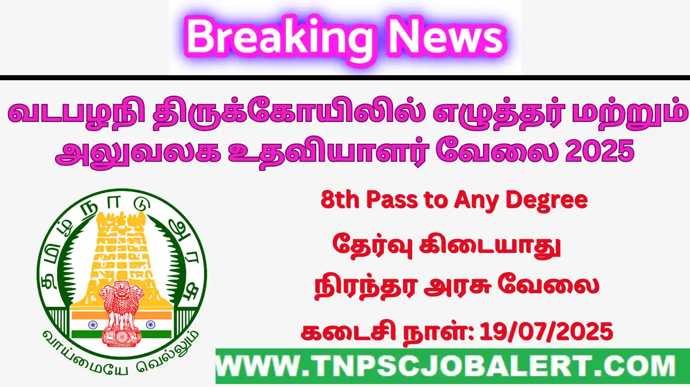 Vadapalani Andavar Temple Job Recruitment 2025 releases the official notification from the starting date of 20/06/2025 and the closing date of 19/07/2025 . For the applying Vadapalani Andavar Temple Job Recruitment 2025 – Various, Office Assistant Post procedure, the candidate needs to fill out their respective application either online or offline as per the notification released by Vadapalani Andavar Temple . Below we have explained briefly explained about the  Vadapalani Andavar Temple Job Recruitment 2025 – Various, Office Assistant Post like education details, age limits, how to apply, closing date of Vadapalani Andavar Temple Job Recruitment 2025