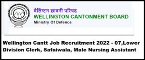The official notification for Wellington Cantt Job Recruitment 2022 – 07,Lower Division Clerk, Safaiwala, Male Nursing Assistant:-
